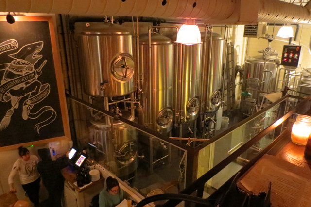 If you asked me to name a place in Toronto that always has a line-up whenever I pass by, Bellwoods Brewery would immediately come to mind. Now that I’ve been myself, I can tell you why I believe that is — In no particular order : they offer great micro-brewed beer, made onsite in large vats which are on full display and add to the decor; their servers are attentive, cheerful and helpful; the place is small, made cozier with those aforementioned vats, that take up a significant portion of the floor-space.