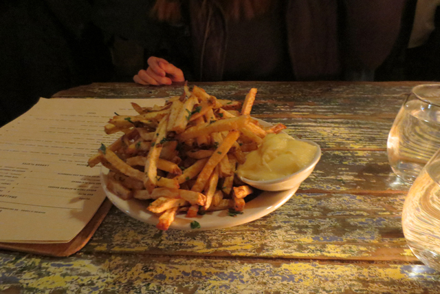 ↑ We shared an order of fries, which came with a sprinkle of fresh herbs and a dish of garlic mayonnaise. They were really good. ↑