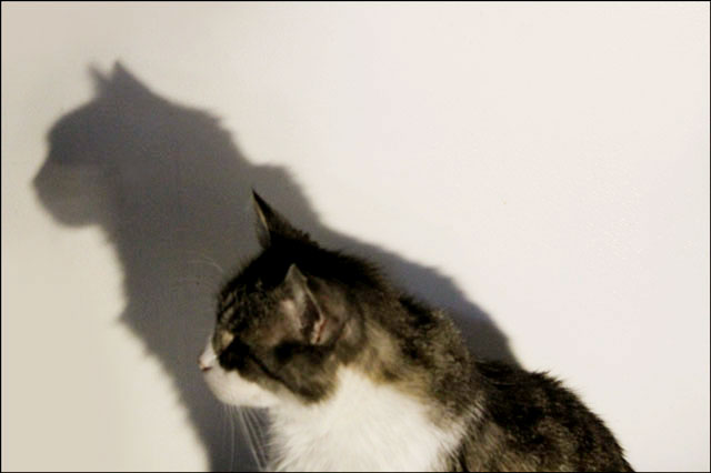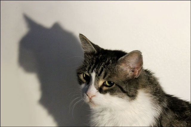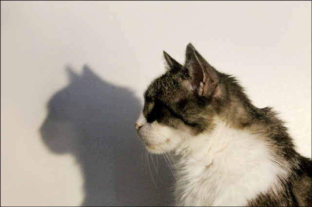 The boycat has really taken a shining to the old utility lamp we clipped up in our office after one of our lamps broke. He actually follows the beam around when we readjust it. We were thinking maybe he’s going for the heat, but it’s not really very cool here yet.