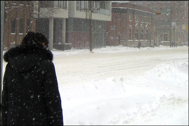 And since I think it’s better for such things to arrive before the holiday rather than after. I popped out in the massive snow storm to mail them on Friday. Here is a shot of the storm when it was only about half way through. I’m not a huge fan of winter but one thing I do like doing is going out during snow storms. It is like you’re on a different planet. Mind you, I certainly would never be walking along in it bare headed like this lady was. I can’t help but wonder why she didn’t pull that warm looking hood up.