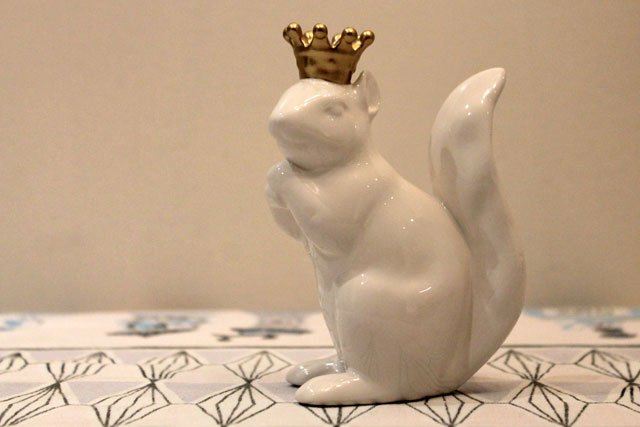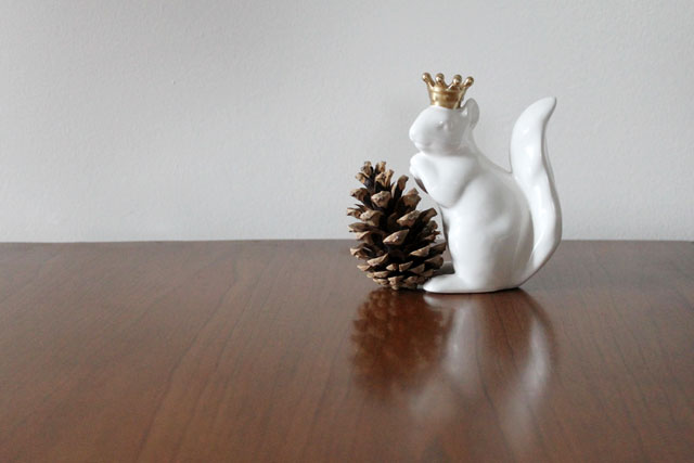 And look at this cutest of hostess gifts these fine people brought over! Julie had read this post on my blog about me seeing a white squirrel in the park, and knows about my general love of the creatures, so she thought I would like it. She was not wrong in that assumption at all. I love him and he now sits safely and predominantly behind glass in our china cabinet.