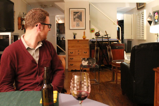 On Thursday my friend Julie and her husband Guy came over for dinner. I met Julie at a friend’s party last fall, and the two of us have hung out together since, however, this was the first time the men joined in. Everyone, including Eddie the cat, got along very well!
