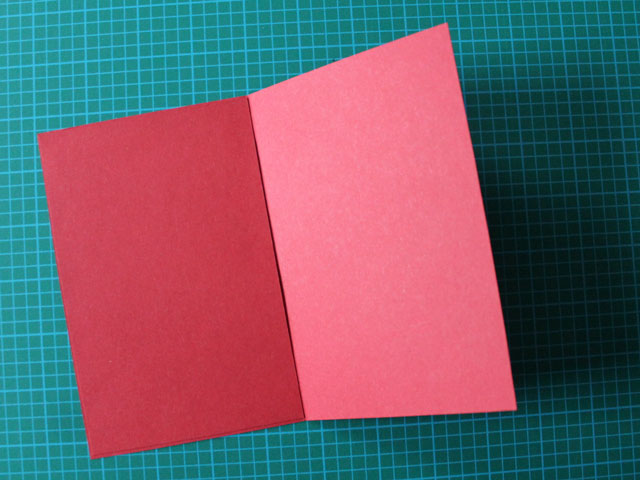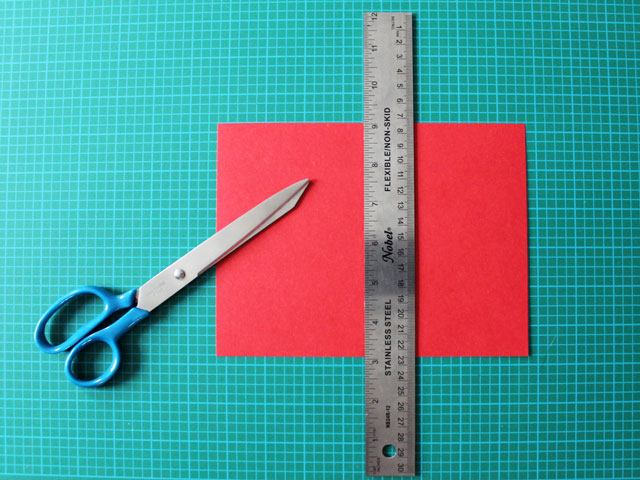 – Make the card base out of the red paper. As mentioned, I needed mine to be 4 x 6 inches, so I cut a piece that was 8 x 6 inches. Then score the folding line (by gently running the point of your scissors), and fold it. It can be hard to get the fold perfect, so if it’s a little off, just trim around the edges of the card if you want.