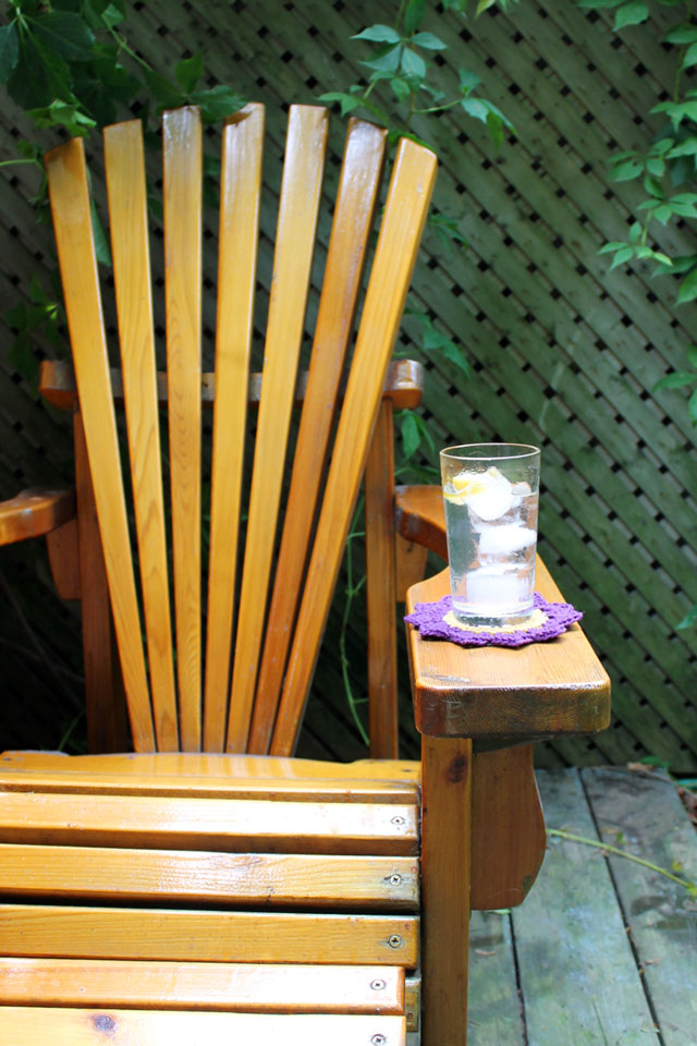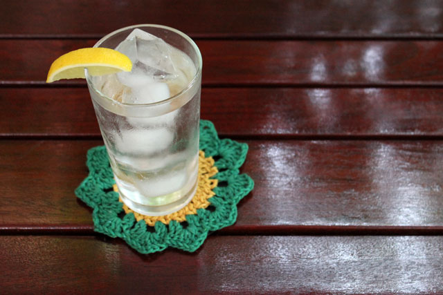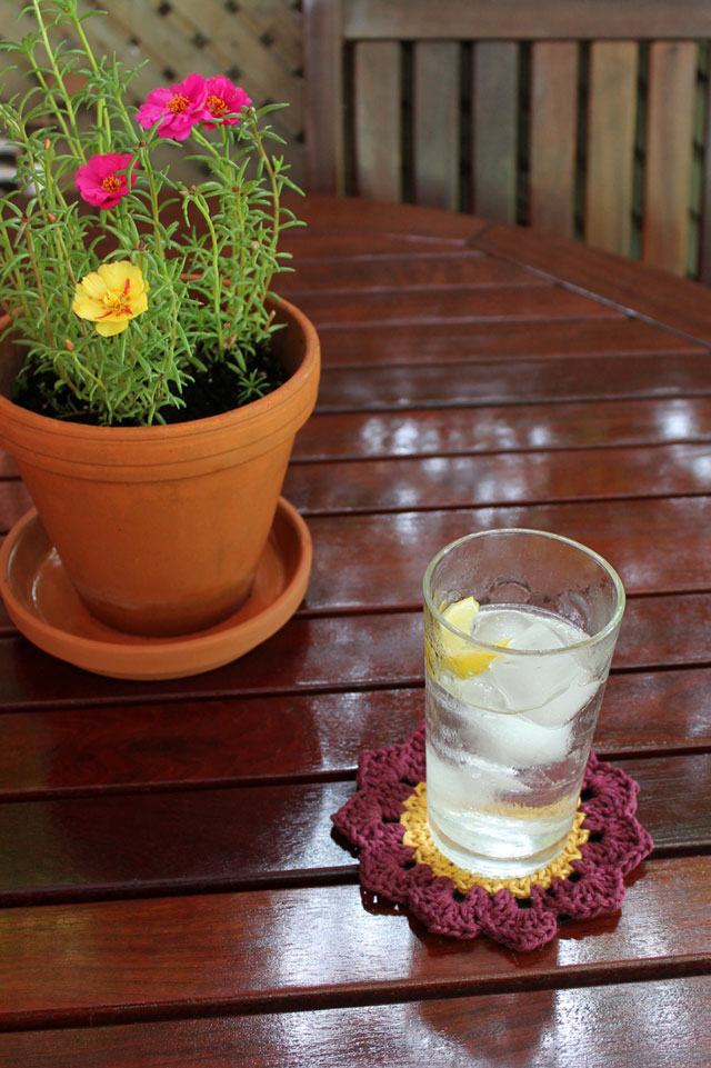 Coasters are a common crocheting project and there are many nice looking patterns out there, however, although I’ve been crocheting since first grade, I’ve never made any. As much as I’ve liked how they look, a coaster made of any kind of fabric that absorbs liquid just didn’t really make sense to me. Certainly they would look cute sitting under a dry glass, but if that glass had cold liquid in it on a hot day, it would inevitably be wet on the outside, and the coaster would let the moisture go right through, ruining any wooden tabletop the coasters were meant to protect.