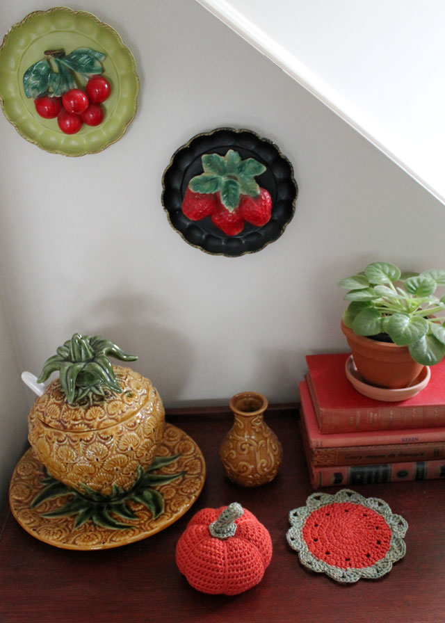 The vintage chalk-ware fruit wall decorations are also something I found on ebay a while back.