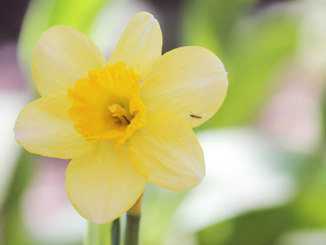 While the tulips bloomed beautifully, other bulbs did next to nothing. Every year I try daffodils, and just can’t get them to work. Lots of leaves but no flowers. This year I got 1 single flower, even though I planted 6 fresh bulbs last fall. So, I’m giving up on them. Also, the alliums that I put in the fall before, that did very well their first spring (written about here) were a dud this year, again, with lots of leaves and no flowers. There was one bud (pictured with the insect on it) but it shriveled up and died before opening. The crocuses were so-so, but I know that’s because the squirrels dig up and eat the bulbs (see a story about a particular crocus bud eating squirrel here).