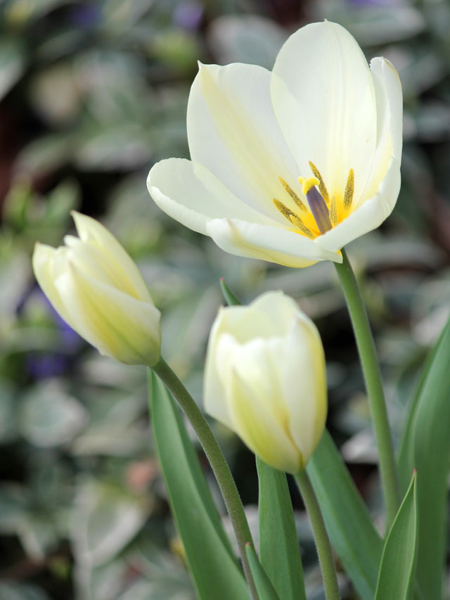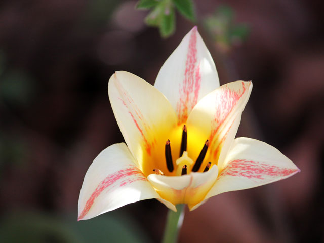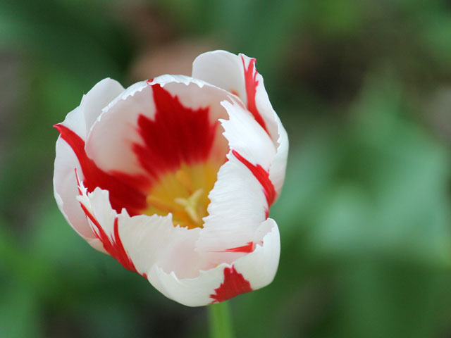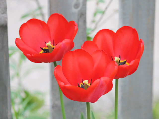 This excellent showing was in spite of losing a good third of the buds to our friendly neighbourhood skunk before they even had a chance to open up. Toronto has quite the wild skunk population … they come out at night and don’t really bother anyone. We very rarely ever smell their presence. They actually come quite close sometimes when we’re sitting outside, and don’t seem at all perturbed even if Eddie the cat is with us. Of course, we don’t make any sudden movements when they’re nearby! My only complaint with them is that they love to break off tulip buds, so I’d go out in the morning and find empty stalks and mashed up buds on the ground.