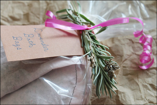 In a nutshell, these are made using coffee filters, filled with lavender and used to scent your bath.