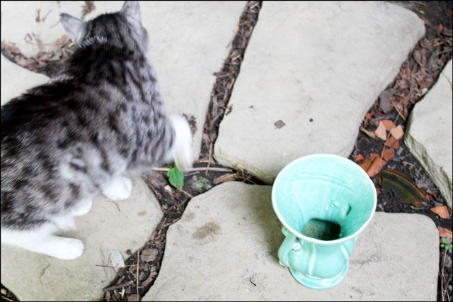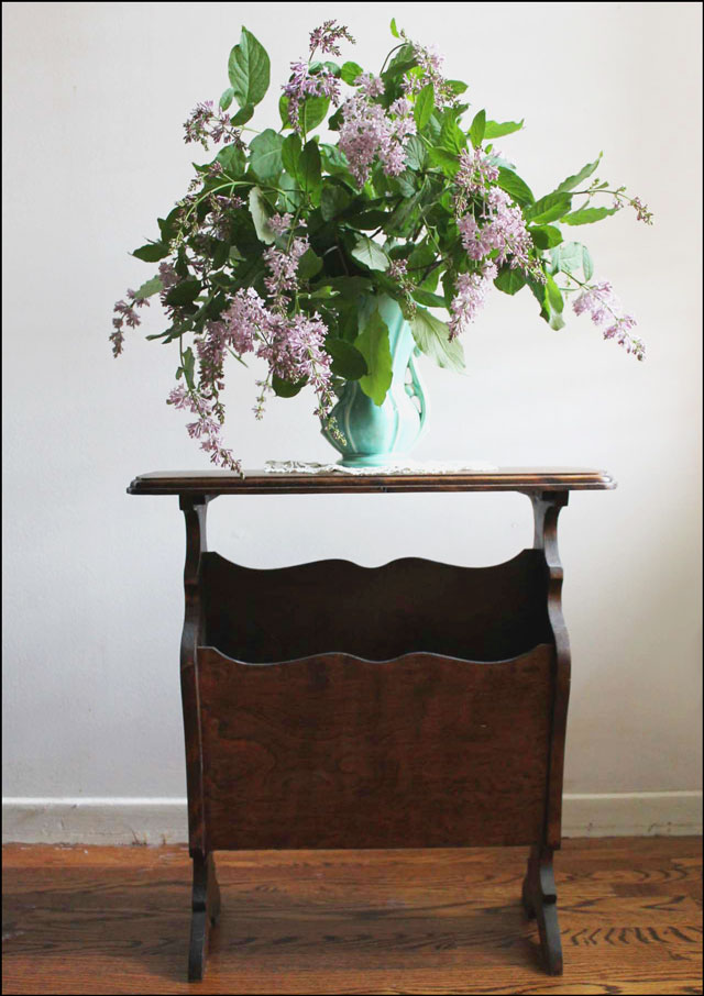 Here are the cuttings I had to take this year, in order for us to be able to walk by the tree. I haphazardly arranged them in an old vase that I was given years ago by vintage dealers, from whom I was buying a set of dishes. The vase was already old when I got it and I usually keep it safely tucked into a glass-doored cabinet (along with the same dishes I was buying back then). The people who gave it to me were the very first to introduce me to the beauty of vintage housewares, as when I first moved downtown as a single girl beginning to make my way in the world, their shop became a real favourite place to go. (Anybody remember the shop ‘Red Indian’ on Queen Street West?) They would let me take my time looking at every perfectly curated treasure-from-the-past, as though I was visiting a museum. The vase is McCoy pottery and I remember when they presented it, they told me it was ‘the real McCoy’. I’m sure that’s not where that saying comes from but I’ve always called this vase my real McCoy.