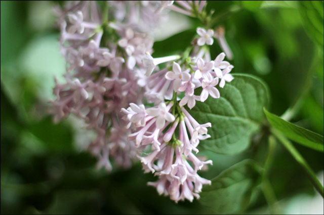 Did you know that lilacs are trees and not bushes? I didn’t know this before meeting this one. They are in the olive family and there are actually 20 to 25 different specimens of Lilac. Ours is one that doesn’t smell very strongly and I’m actually happy about that because with so many blooms, it would have been overwhelming if they smelled as strongly as do the more common ‘French’ lilac. The flowers we get are more delicate and fragile looking and very lightly scented.