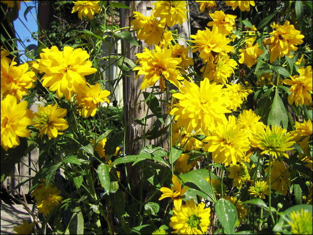 Here in Toronto the last flowers to blossom in the annual cycle are a lot of golden-yellow ones.