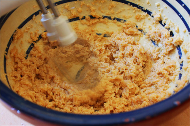 Set the flour and apple mixture aside and take out a larger bowl. With an electric beater or really strong muscles, beat together the sugar and butter until they are fluffy.
