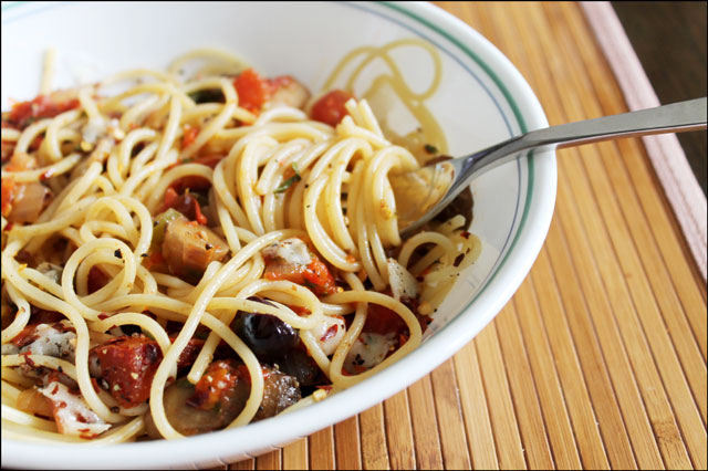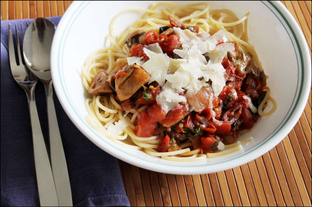 Here is a low-fat vegetarian pasta sauce we made with ours the other day. I say ‘we’ but really it was Nick doing the cooking. I was upstairs and could smell the aroma which was rich and delightfully smoky. The resulting pasta dish was absolutely delicious and after I had finished it, I wished that I could turn back time and eat it all over again.