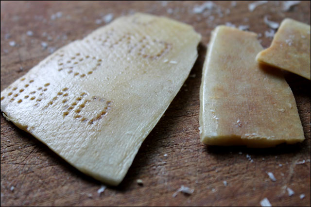 (1) The cutest lemon bag ever? / (2) I was surprised to find these lemon wedges tucked inside the Melmac sugar bowl when Nick was serving some lunch outdoors. I so enjoy seeing how he uses the vintage kitchen pieces I collect! / (3 & 4) Tiny key limes compared to a regular lime. / (5 & 6) The first fresh corn of the summer. The season is much too short. / (7) One of my very favourite sandwiches! My sister was given some garden tomatoes from her neighbour, a few of which she kindly shared with us. / (8) Parmesan cheese rind. Yes, good cheese is an expensive luxury but it can add so much flavour to inexpensive ingredients, such as the ‘food love of my life’, pasta!! / (9) Nick might make the best home fries ever, the method of which he has never shared with me! (10) Nachos with guacamole, hot from the oven. / (11 & 12) Apple pie made with apples imported from our friends to the south, as Ontario’s apples did not grow this year due to a late frost in the spring that killed all the buds. We are missing them, that’s for sure. / (13) Soup with a smile. Some leek and potato served this way after a tiny disagreement. Yes, it certainly helped the situation.