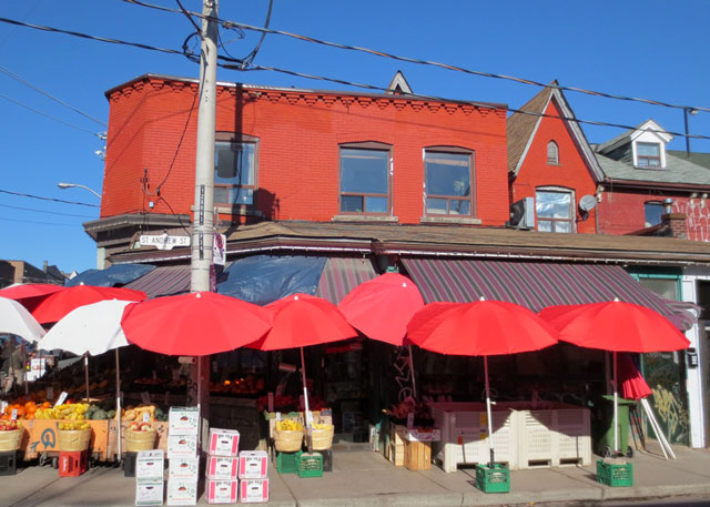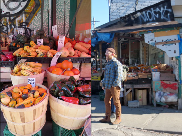 Here are some photos of a walk to Kensington Market we took on Sunday morning. It was clear and sunny out, although cool enough that we needed hats, scarves and gloves. Really it was one of those perfect autumn days and I am so glad I got up and out with Nick after he announced he was going. (He goes a few times a week and, especially on a Sunday morning, I am more apt to let him go on his own.)