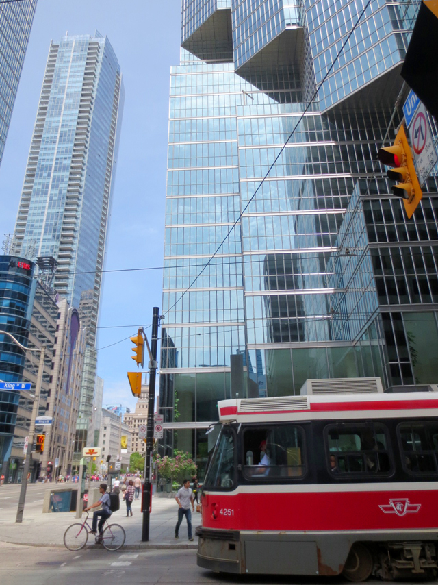 ↑ Looking west towards University Avenue, on King. There’s one of our brand new streetcars. ↑