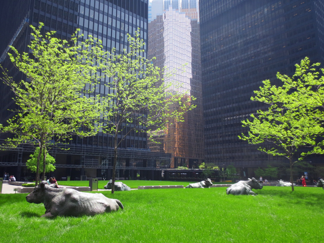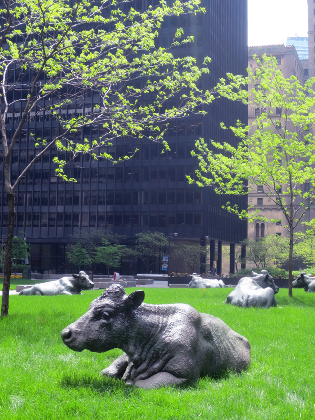 This sculpture of seven life-size bronze cows is called “The Pasture” and was created by Canadian artist Joe Fafard in 1985.