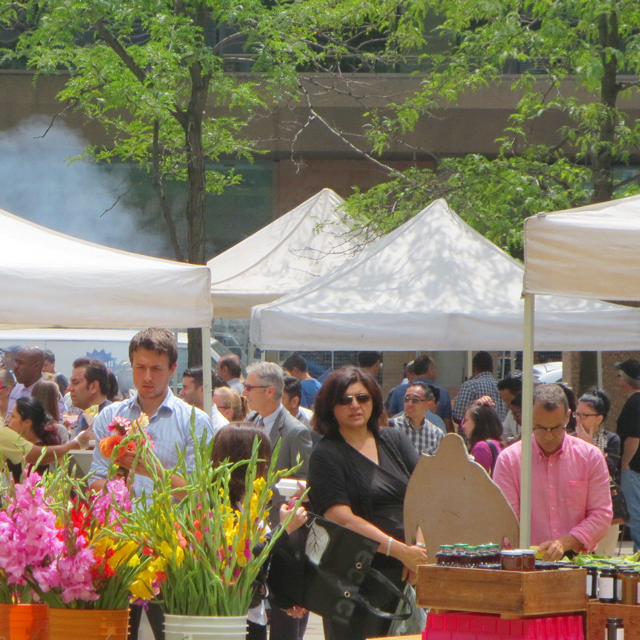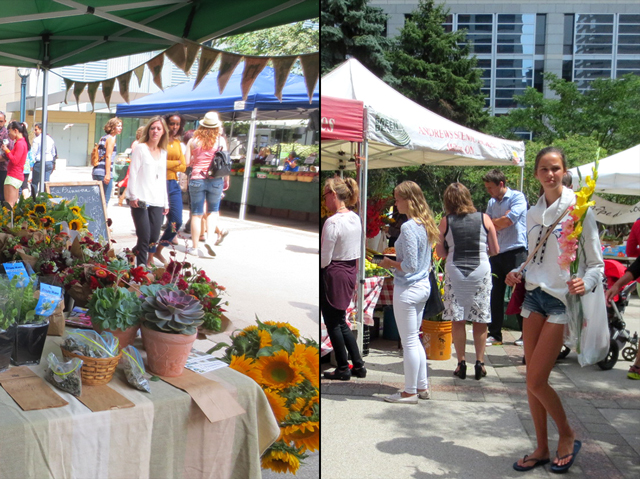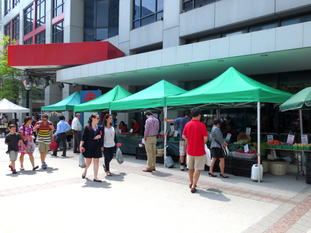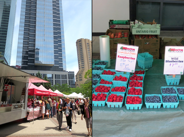 If you’d like to go to a Downtown Toronto Farmers’ Market, there’s a weekly one, which includes live music, prepared foods, and fresh produce, every Thursday from 8am to 2:30pm, in David Picaut Square. Here is a link with the details.