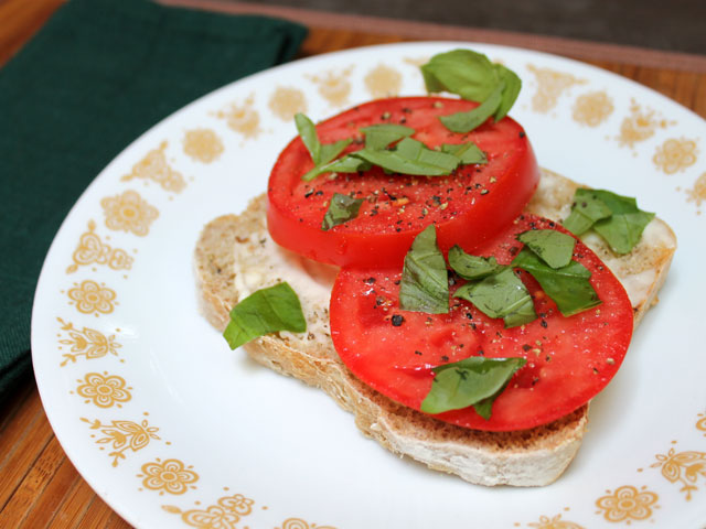 The field tomatoes contributed to a great lunch, thickly sliced on toast with mayonnaise, basil, fresh pepper and sea salt. That’s summer on a plate, right there.