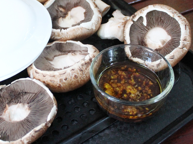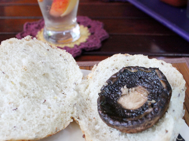 We barbecued the Portobello Mushrooms and served them burger style with all the fixings. [Baste with a mixture of olive oil, balsamic vinegar, garlic and salt while cooking.]