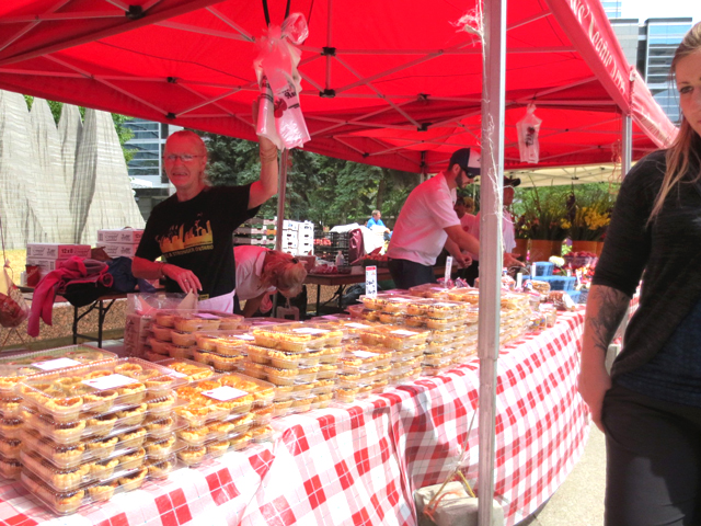 It was great. There was such a buzz going on there and people really looked like they were having a good time enjoying the sunshine and friendly atmosphere of this outdoor market. In addition to shopping for flowers, baked goods, cured meats, cheese, honey, fruits and vegetables, many were also getting lunch at the several vendors serving cooked food.