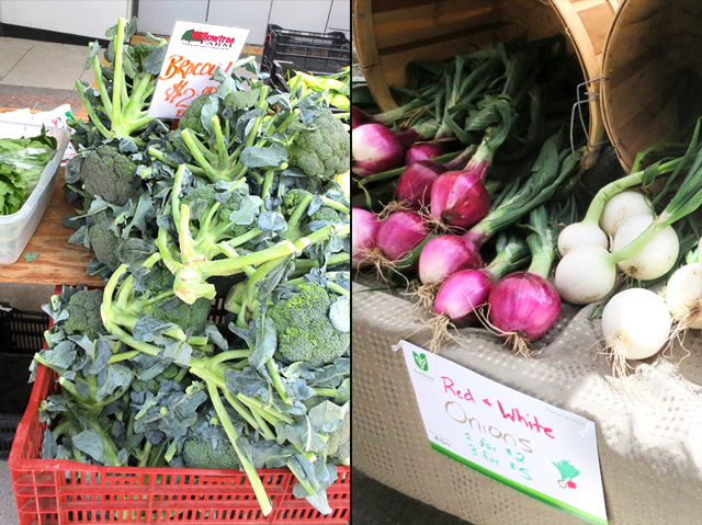 We were buying fresh produce that had just been picked from the fields that surround Toronto, so I wasn’t sure what the prices would be like, considering we were being offered such quality locally grown goods. I was surprised to see how reasonable they were — less than at our closest grocery store, for sure. For example, a whole basket of perfect sweet peaches from the Niagara Region for $5. A big head of broccoli was $2.