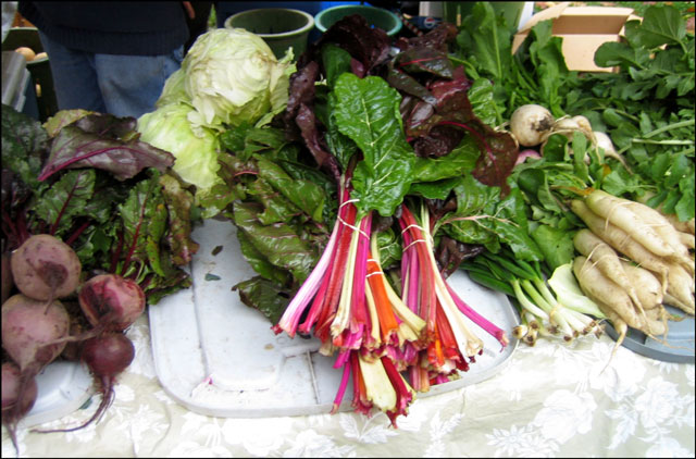 And, for the piece-de-resistance, I picked up a bundle of Rainbow Swiss Chard! Have you ever seen this before? I had never. And in fact, cannot remember ever actually having Swiss Chard before, making this the second aspect of this experience that was new to me. When I brought it home, I discovered that it was a new vegetable for Nick too, so we had to look up how to prepare it. (Basically, you just saute it with garlic and a bit of salt, and serve it with fresh lemon. It was delicious. And I could just feel the nutrients of this dense leafy green entering my body!)