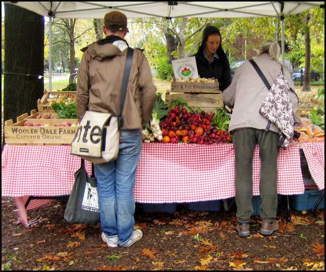 And may I tell you that it did take a bit of ‘talking myself into it’ to get out there because it had been raining non-stop all day and showed no signs of stopping. In the end, I didn’t want to miss the experience of a full-fledged Farmer’s Market right in the city though, so I pulled on my pink raincoat and out I went. (Aside: My coat is a cute vintage one that Nick surprised me with for my birthday one year … if you’re going to be out in the rain, you might as well have a cute raincoat, right?!)