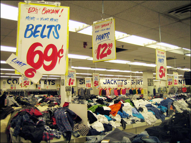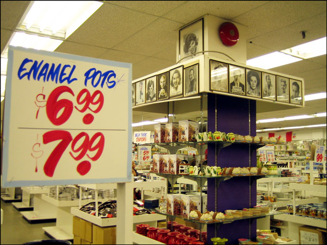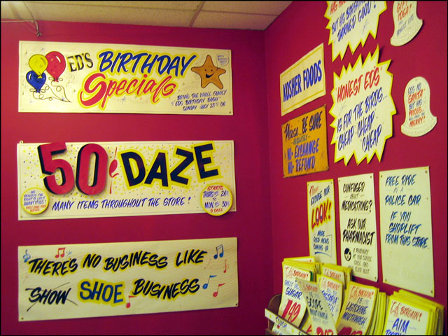 The major premise of the store is that prices are kept very low, and unavoidably the quality of some of the merchandise reflects the low price-tag, however I can attest to the fact that there are some very decent bargains to be found at Ed’s, namely kitchenware items. In fact, we use a covered enamel pot purchased there daily as our indoor compost reservoir! I like it because it was unused-vintage and something I would never have found anywhere else.