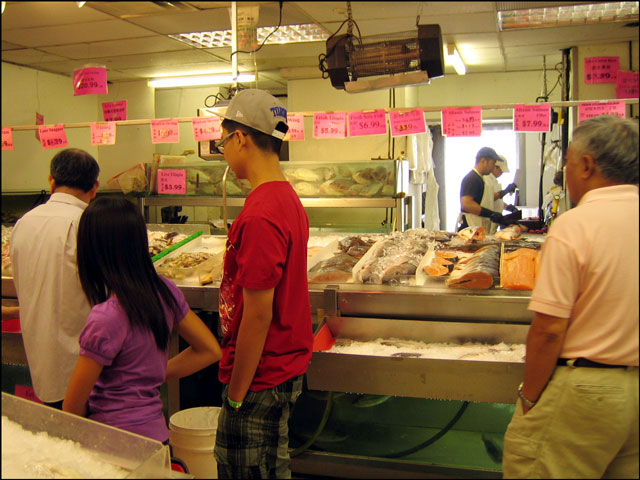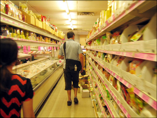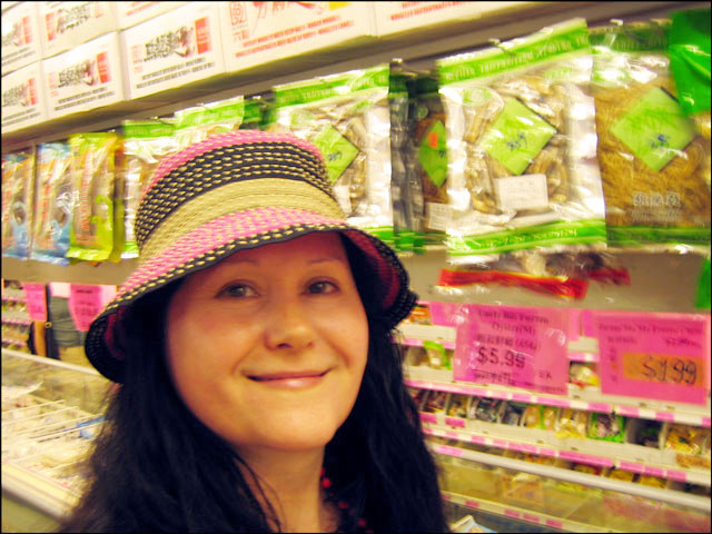 Nick and I took a walk to Chinatown the other day to get some ingredients for Sushi making. Sure Sushi is Japanese but the shops in Chinatown carry a myriad of Asian ingredients. This particular store we were in was 5 isles wide and chock full of the most interesting of groceries. Rather than just go in and grab what we knew we needed, we took the time to peruse the whole shop and ended up with Wasabi powder, pickled ginger, a large bag of dried Shiitake mushrooms, 2 kinds of hot pepper oil, a large bottle of hot sauce (mmm, that was for me!) and a variety of noodles. Plus an eye-full of interesting things and some ideas for future meals to make.