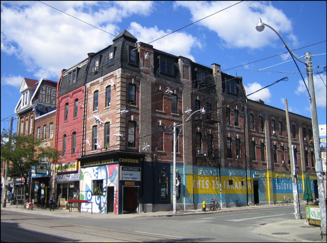 Here is a shot of the Cameron House. It is now a bar and performance space with two stages. The rooms upstairs are apparently rented to artists and musicians. Having been opened as a rooming house way back in the early 1900s, it is a Queen West institution. As the story goes, it was owned and run for many years by a group of artists and musicians who, as is bound to happen, eventually had to retire from the business. So it is now managed by the son (nephew?) of one of the former owners, who basically grew up there.