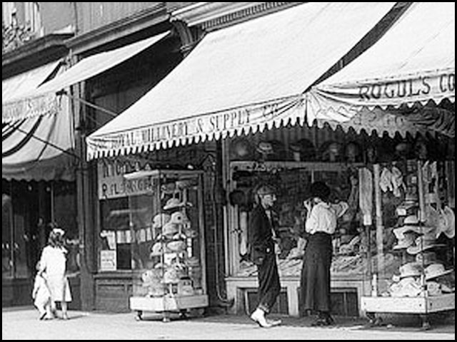 The second ‘Then Versus Now’ series is a bit further to the east, just east of Spadina. The historic photo, taken in 1916 shows a time when the buildings would have been quite new. To give you a feel of what you’re looking at … the large black building in my recent photo (below), is #318. See the same number on the awning at the right hand side of the historic picture? The white vehicle in my recent picture is parked right in front of where these people were.