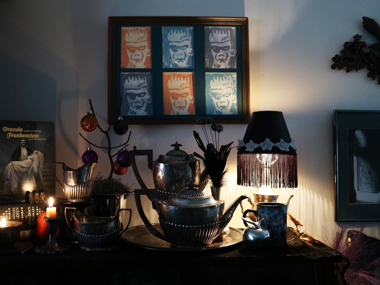 Based on this new found interest, this week I made two pieces of furniture from scratch. The first is a chair based on the design of a couple of vintage mid-century chairs, in the teak Danish style, that we have in our lounge area. The most common miniature size is 1:12 scale, meaning 1 inch for every 12 inches in real life, so I measured our big chairs to get the dimensions for the little one. I used some vintage cotton velvet that I've had in my stash since I was a teenager (no kidding, I find it hard to get rid of things!). The second is a tiered table roughly based on one I saw online. I also crocheted a small cushion for the chair and a doily for the table.