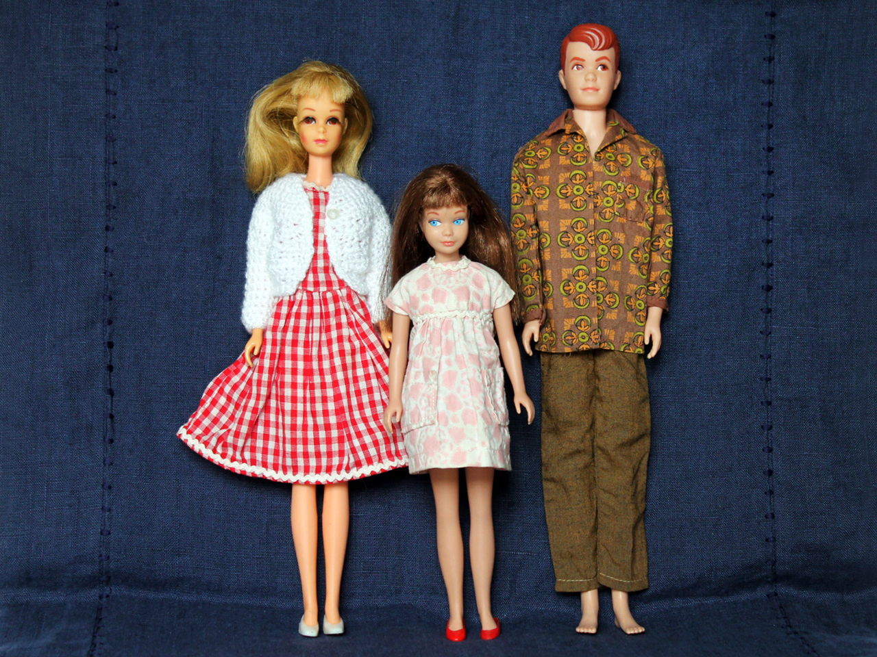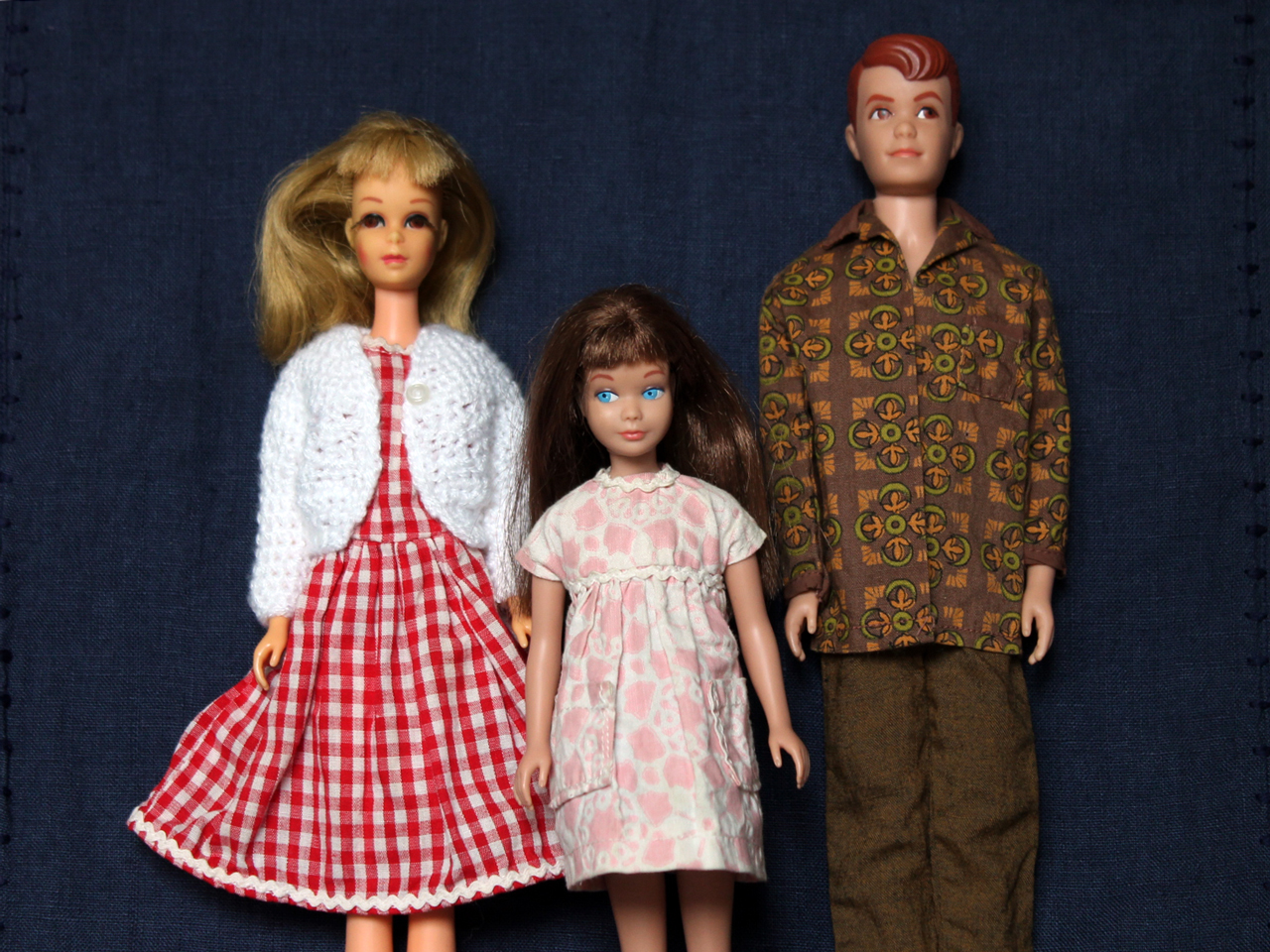 Hi! Earlier this year, a kind online friend sent me a generous gift of some vintage Barbie dolls and clothing for them. One of the dolls was the Skipper (Barbie's little sister, from 1963) in these photos. Also, years ago, an old friend gave me the gift of the other doll, Francie (Barbie's modern cousin, from 1965) and some amazing outfits for her. So, these two pals of mine started me down the vintage Barbie trail!