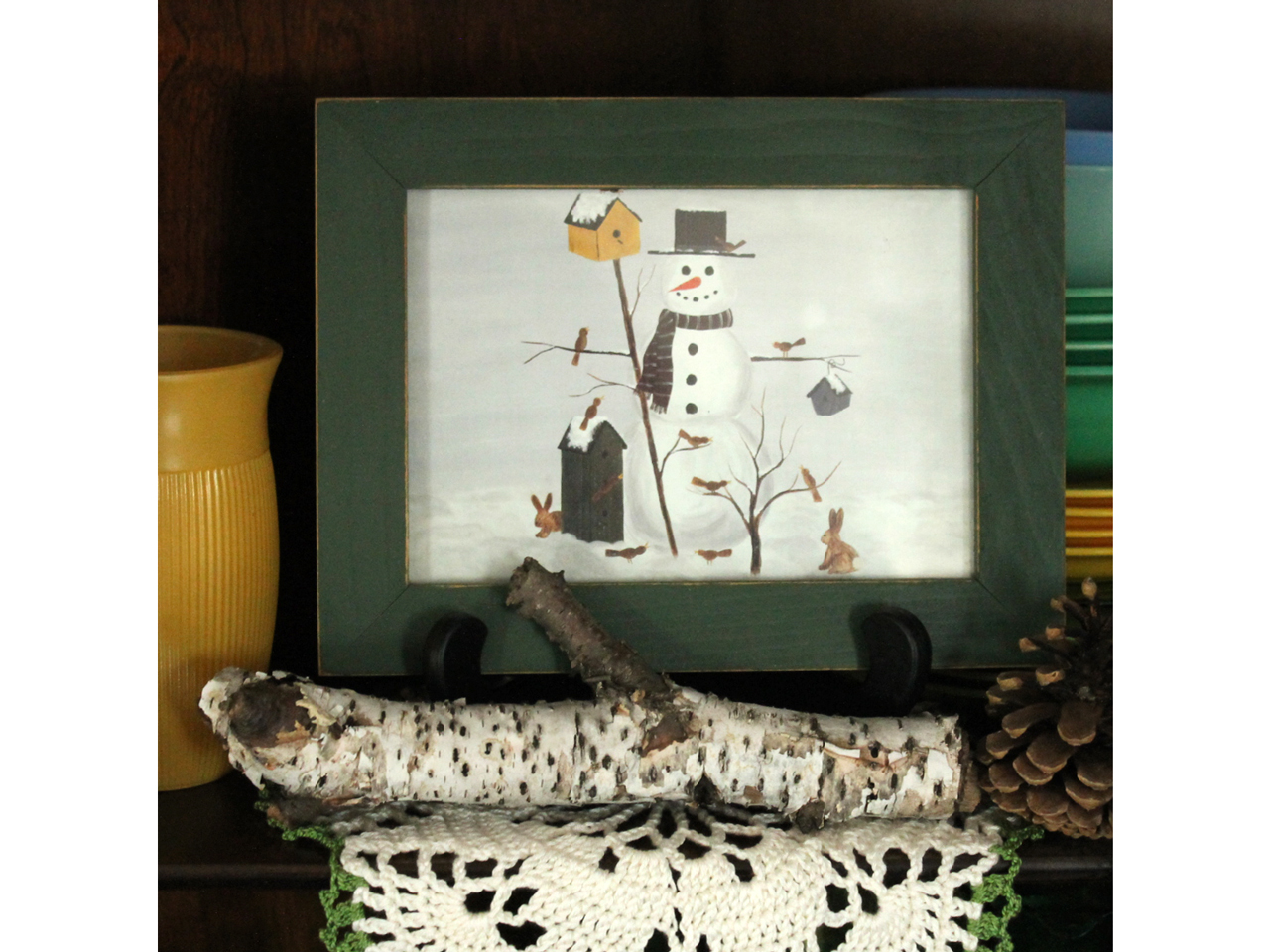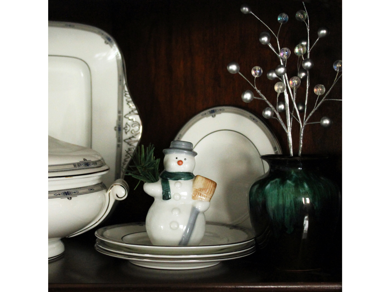 So, here are recent photos of a few spots in our home decorated for winter. Long time readers will know that I love thrifting, therefore a whole lot of the items in these shots are from the thrift store. Nothing else gives me the thrill of a great thrift store find!