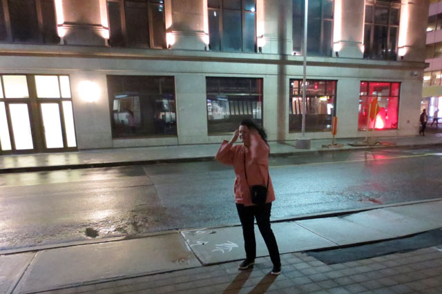 c="http://www.loulou.to/wp-content/uploads/2013/10/downtown-buildings-at-night.jpg" alt="downtown-buildings-at-night" width="640" height="427" class="aligncenter size-full wp-image-19849 blk-brdr">Overnight on Saturday there was a big art show here in Toronto called Nuit Blanche. This was the 8th year it has happened and the 5th time I've set out in the middle of the night to see what was out there.I must admit that I suffer from 'the-fear-of-missing-out' where this event is concerned, and the times that I did choose my cozy bed instead of venturing out, I ended up with the distinct feeling of regret in the morning.Those years that I didn't go had a lot to do with my dislike of crowded places. While I love living in a busy city, I prefer to observe things from the outskirts of any large crowd. And I had found that there were too many people gathering around the displays for me to find the event fun.So last year I thought I'd try a different tact. Rather than going out between midnight and 3am like I had before, this time I'd go to bed early and set my alarm clock for 4:00 in the morning. I tried to wake Nick up to come out but he decided to skip it. Then I very nearly just went back to sleep myself, but I rallied and went out by myself.The weather was perfect and since the bar crowds had completely cleared away by that late hour, I was very nearly alone (except for all the security people, but they were discreet and in the shadows). The experience was very surreal and cool. (My pictures of last year are