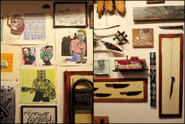 Covering one wall they had a very interesting collection of artworks which seemed to be all based on the theme of trains and, for some reason, knives. I can't say I understood the connection but really liked looking at all the elements.