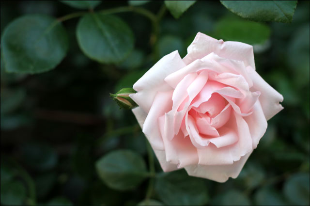 this post. Sheesh, we had barely moved in when Grumpy-Pants sent it!)Anyway, the place was what would be called a 'fixer-upper' and one thing that needed fixing come springtime was that old unsightly fence. Growing alongside it was the thorniest scratchiest rose bush ever, which reached over towards the front door. It was almost impossible to get by it without being pricked. Not the friendliest of welcomes to anyone coming by to visit. I felt that it just had to go.So, in getting ready for the replacement of the fence, I cut that rose bush down to the nub. I was ruthless. After cutting and cutting and being pricked more than once, right through my garden gloves, I was left with a gnarly stump. It had (and still does) part of the old chain link fence embedded right within it. The bush must have been planted around the same time that the fence was put up and then over the years the two melded together.But there was still so much growing energy left in that stump that it immediately began to send out new growth. Which I cut to the quick again.I knew I should have rented some sort of heavy duty garden digger thing designed to take out stumps, but there was no time for that as the fence builders were scheduled to begin work.Then I got distracted by other home things that needed doing and just let the rose bush grow, steering the thorny branches away from the door, and then tying them all tightly in the fall. Note that at this point I had not seen what the flowers on it looked like yet.The next June the regrowth gave me one rose. It was the loveliest of pale pink, and the aroma was the perfect rosy scent. Ok, I decided, the bush-that-wouldn't-die could stay.
