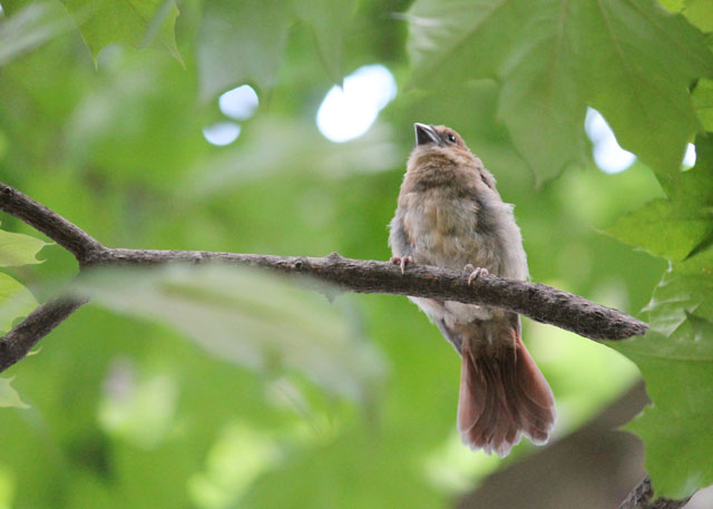 So I was pretty excited having this family taking an extended stay nearby. I got to know their chirps and calls and I think they got to know me too, because towards the end of their time here, they seemed to have gotten very used to having me lurking around below them with my camera, and they didn’t seem alarmed in the least.