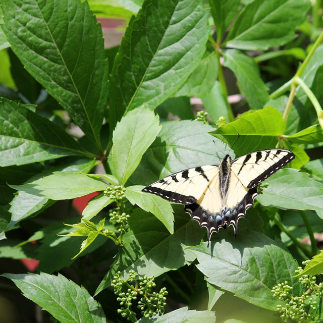 There have been other beings that fly hanging out in our garden too this spring. Here is a Swallowtail butterfly, that I found resting in the sunshine. Again, I had to be quick with the camera because it flitted away in short order.
