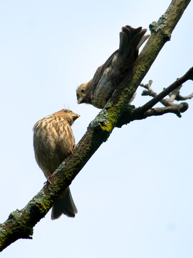 Next we have the House Finches, with their charming song and pretty red plumage on the males. (There are more photos of this species from three years ago, in this post, if you’d like to see.)