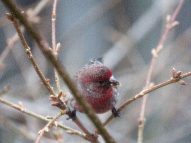 male-house-finch-eating-forsythia-buds-birds-in-toronto