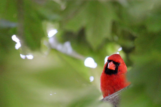 I’ve seen them once or twice in previous years, but they’re not all that common around here. Then, these past few days, I’ve seen this pair at least once a day. They chirp a very distinct song, so I hear them before I see them. Then I scan the trees until I finally find the flash of red. They’re tiny, only about 4 inches long, so they’re not that easy to see among the branches.