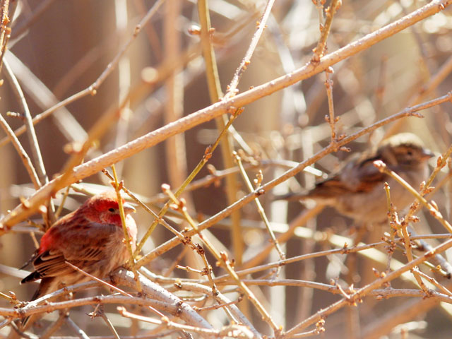 Look who might be nesting somewhere near to our place this spring — these are House Finches!