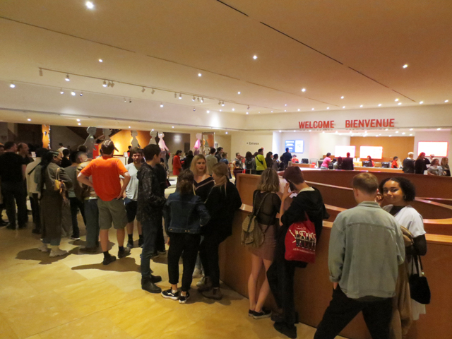 The gallery has set up a kiosk with tablets where guests can add themselves to the list to see it, which will allow for less crowding at the entrance of the exhibit and people will be able to take in the rest of the art while awaiting their turn, rather than stand in a long line-up.