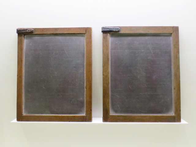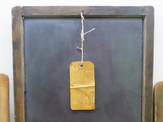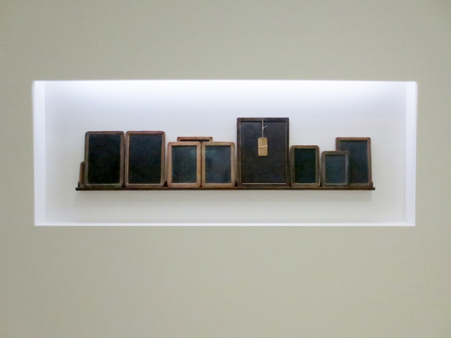 ↑ There was a room containing many of these vintage black-board slates. In listening to Vija discuss them (in the audio files linked above) I discovered that a few were actual antiques she’d found at a secondhand store but most of them are items she completely created from scratch. Viewers are not told, which is which. ↑