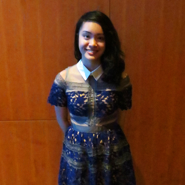 ↑ We’d ridden the elevator with this friendly lady, who graciously allowed me to photograph her, in her very pretty dress. ↑