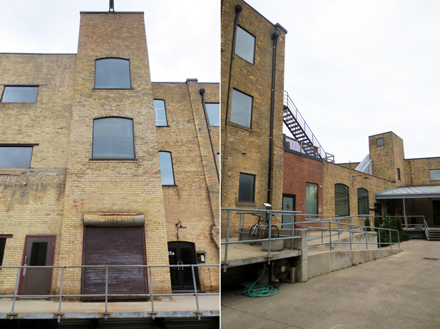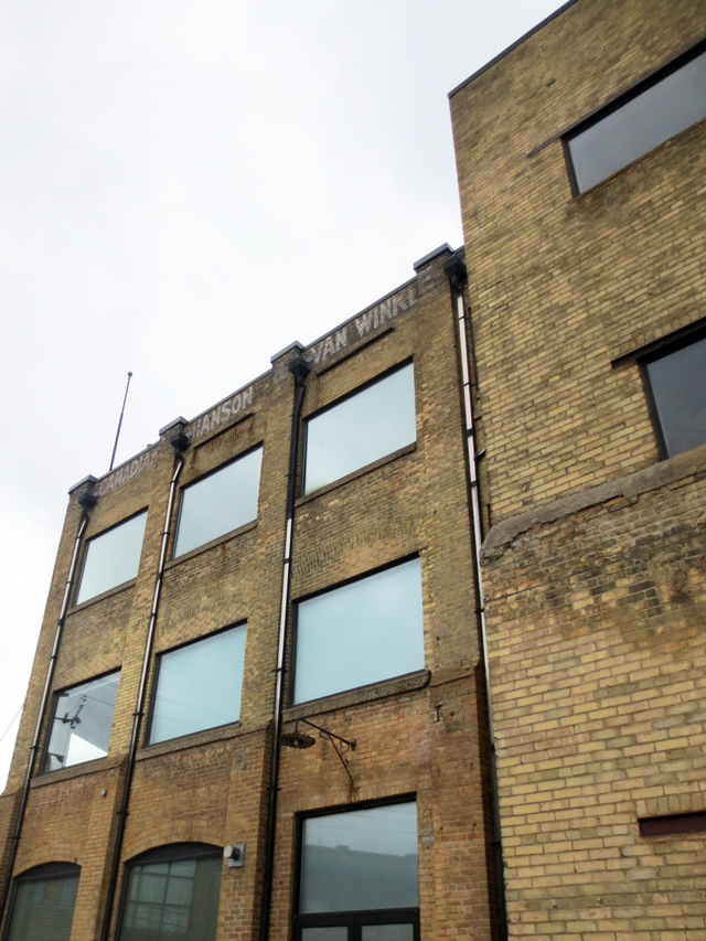 The gallery is easy to get to, located just off Dundas Street West, east of Roncesvalles, at the end of a short avenue called Morrow. It’s within part of a former factory built in the early 1900s, called “The Canadian Hanson and Van Winkle Company”. As far as I can determine, they made supplies for the silver-plating of metals. Today, the small cluster of historic buildings are home to galleries and offices.
