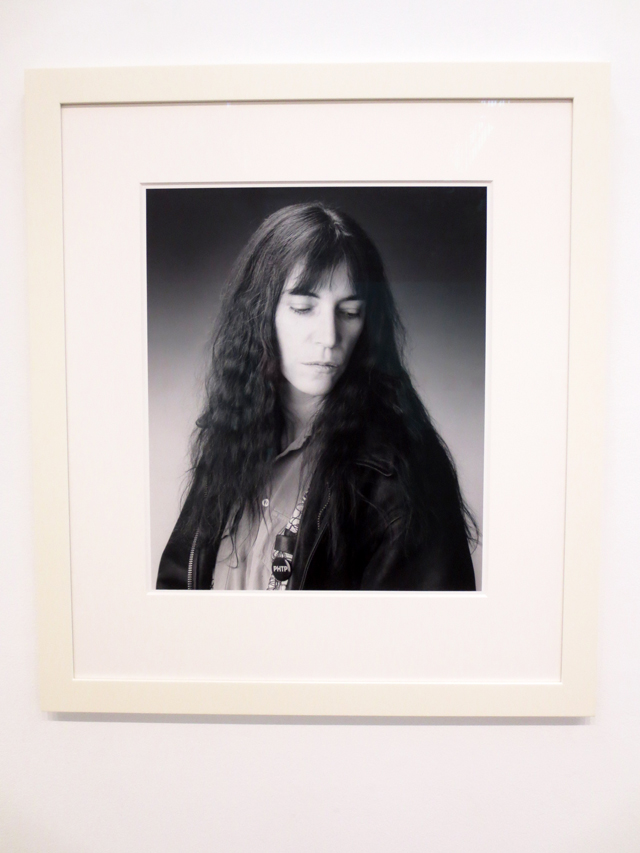 If you’ve read or listened to Patti Smith’s memoir “Just Kids“, some of these are the photographs that her dear friend Robert (b1946-d1989) was taking in the early 70s, as the pair of struggling young artists lived at The Chelsea Hotel. To reinforce the close connection between the two, the largest piece in the show is a portrait of Patti, displayed as the visual pinnacle of the exhibition.