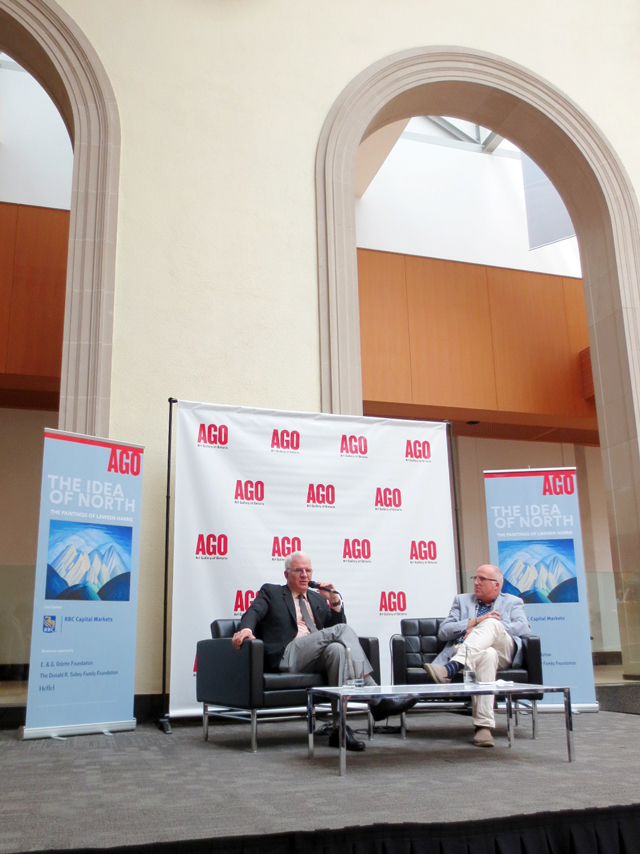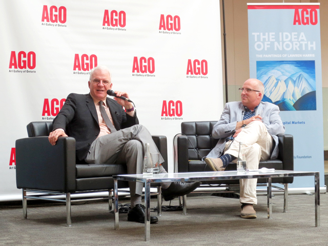 The event was held in the gallery’s Walker Court and was set up as a sit-down conversation about Lawren Harris and his art, between Steve Martin and the art gallery’s curator of Canadian Art Andrew Hunter. This was followed by a few questions from the audience.